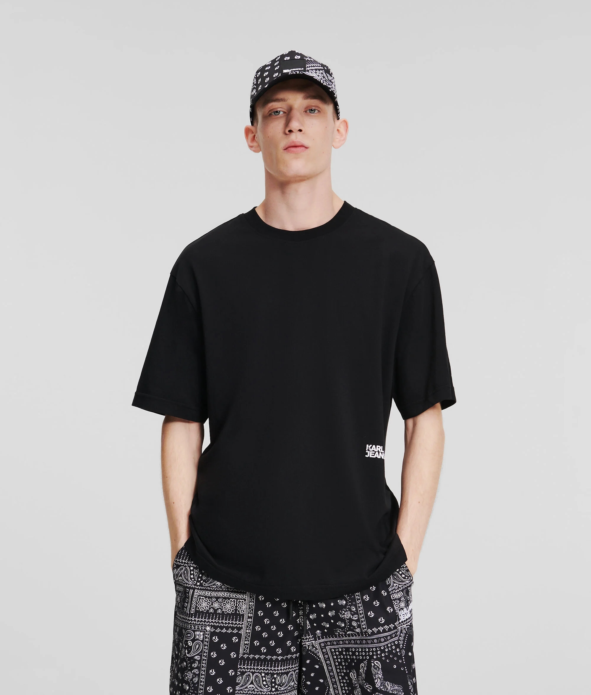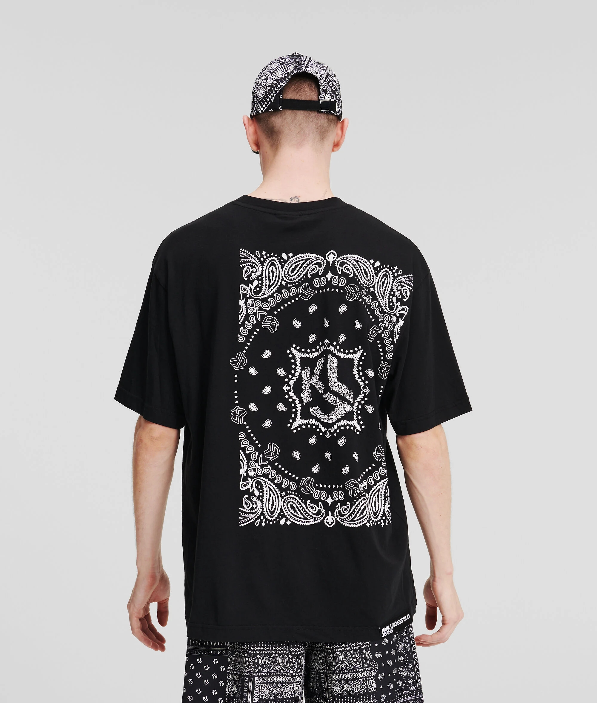 Ease into the weekend with this organic cotton T-shirt, featuring bandana-print artwork on the back and a contrasting KARL LAGERFELD JEANS logo at the front side.