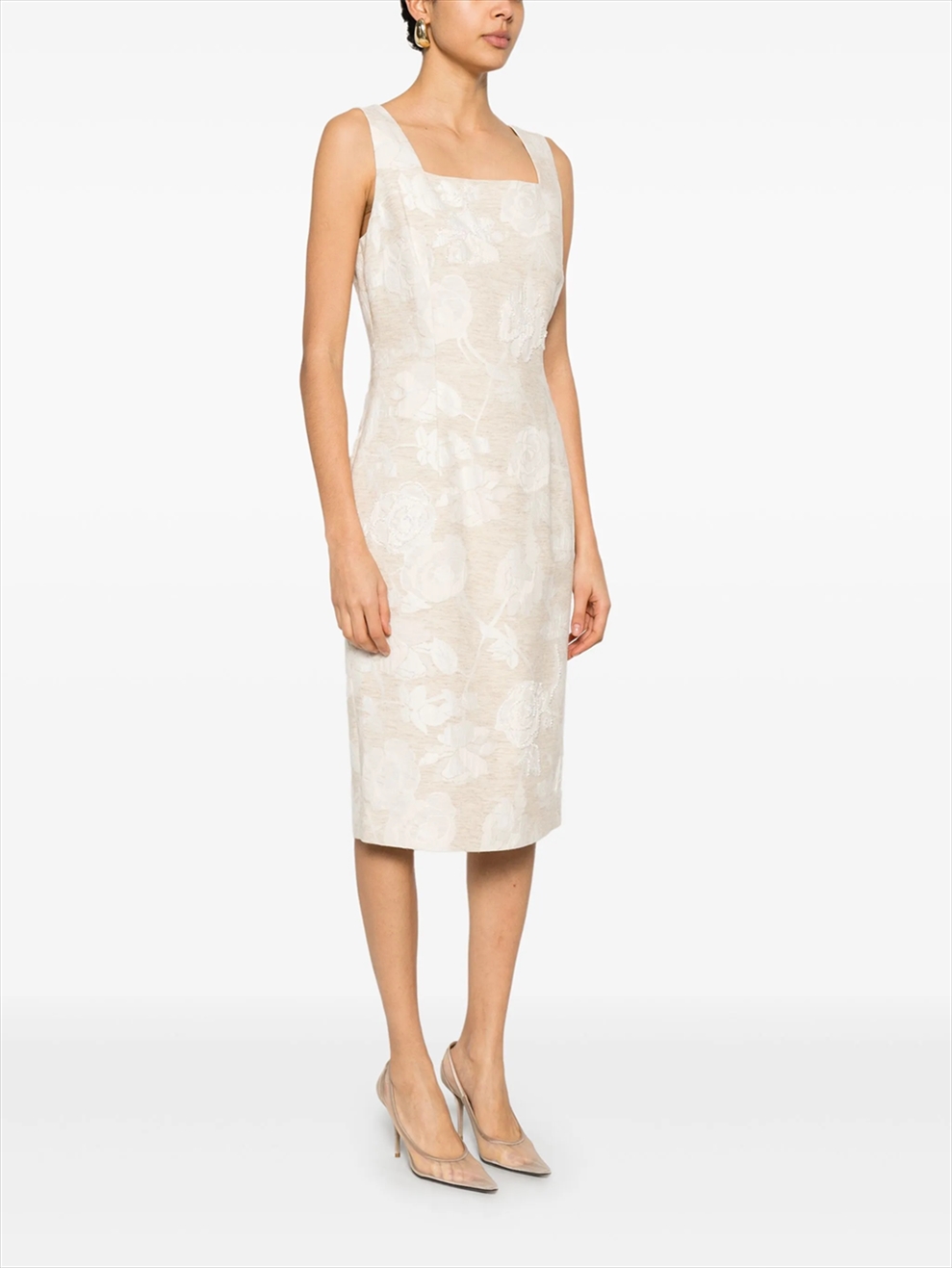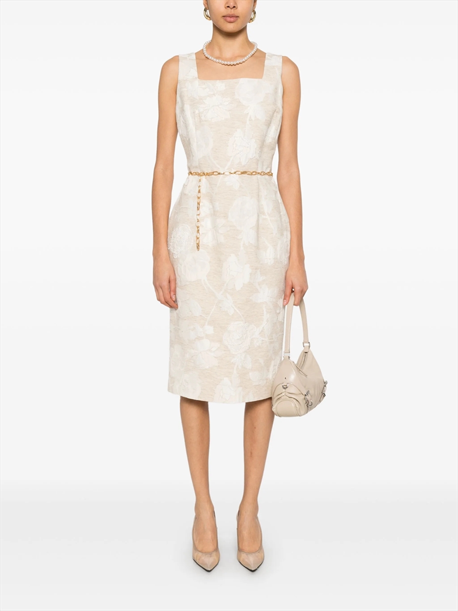 floral-jacquard midi dress