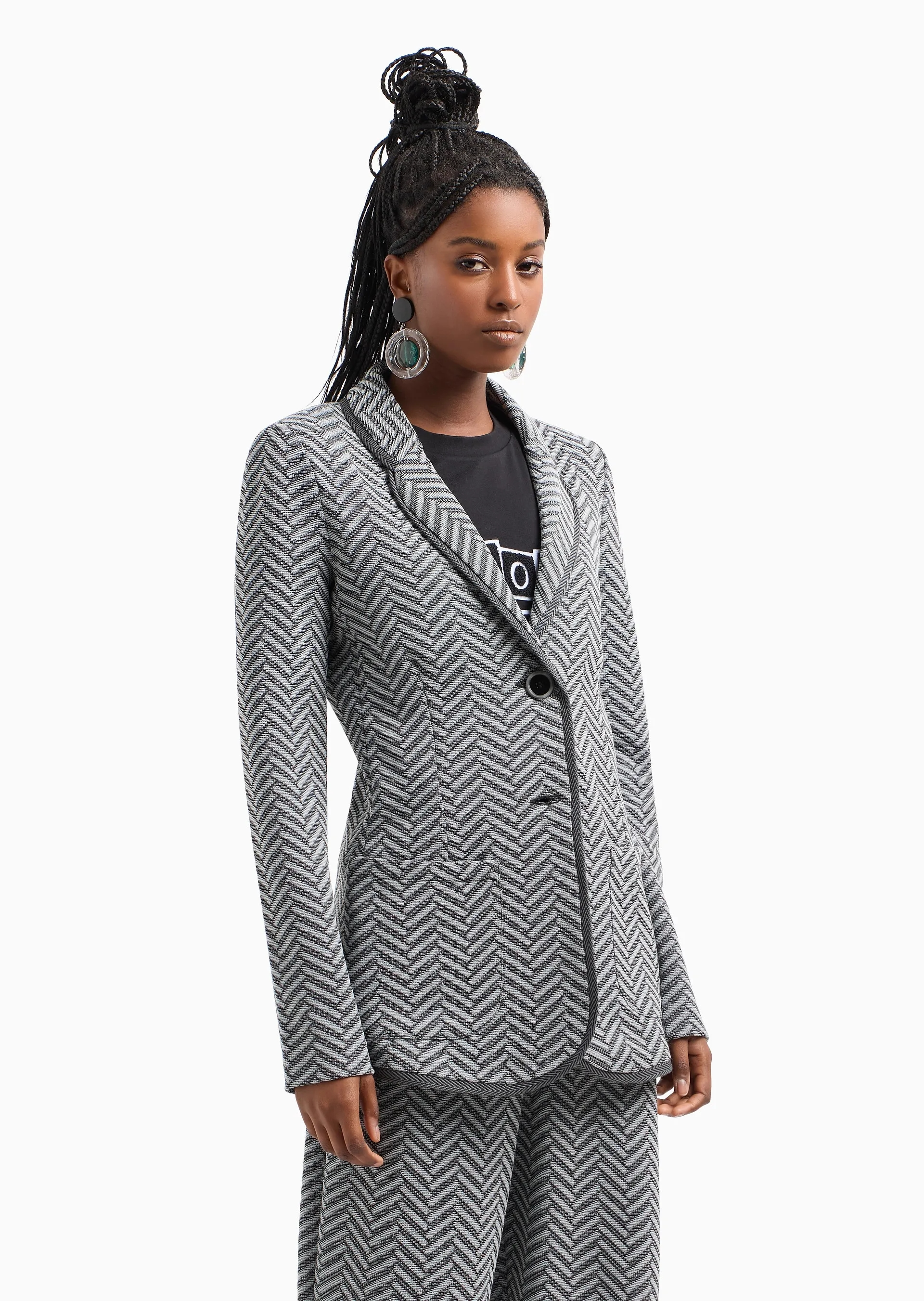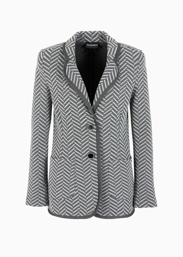 Single-breasted blazer in jacquard jersey with a chevron motif