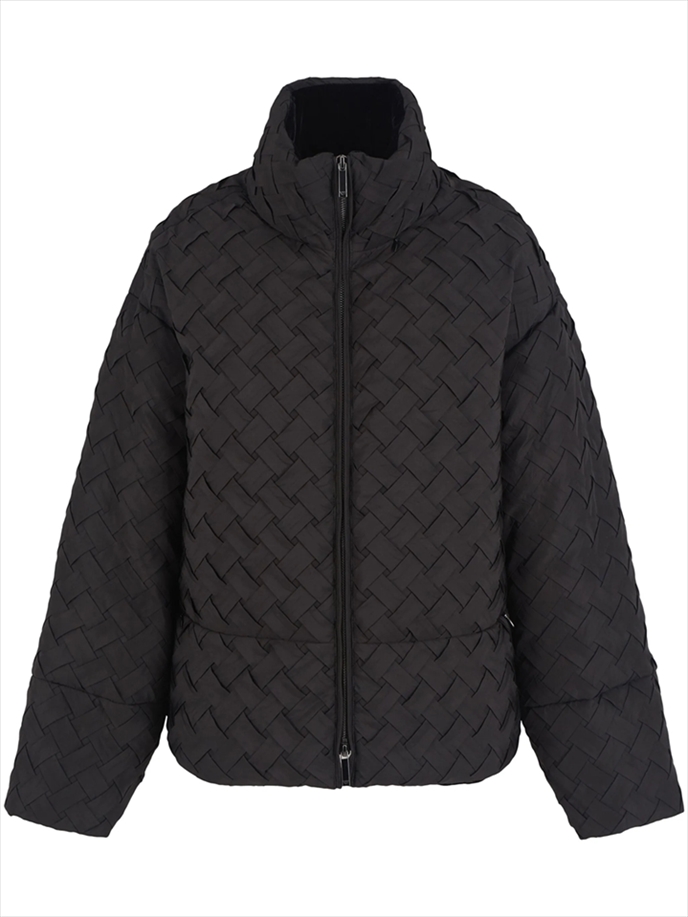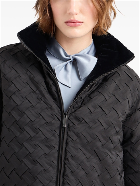 Jacket with full-zip fastening made of woven technical fabric. Daywear becomes more refined in shape and detail, for a more glamorous mood that still maintains the urban spirit that distinguishes most of the collection.