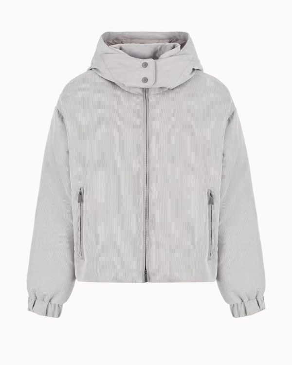 ASV WATER-REPELLENT CORDUROY DOWN JACKET WITH HOOD AND RECYCLED DOWN