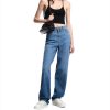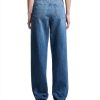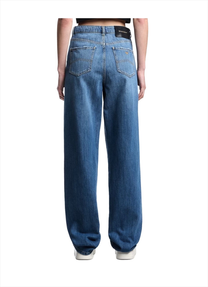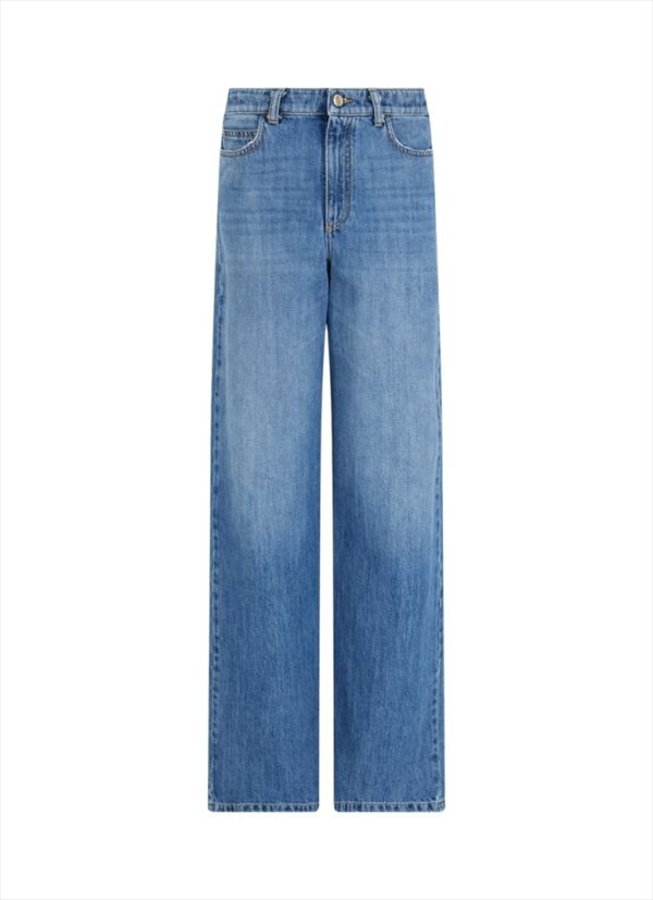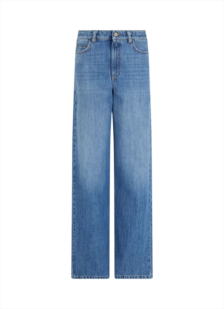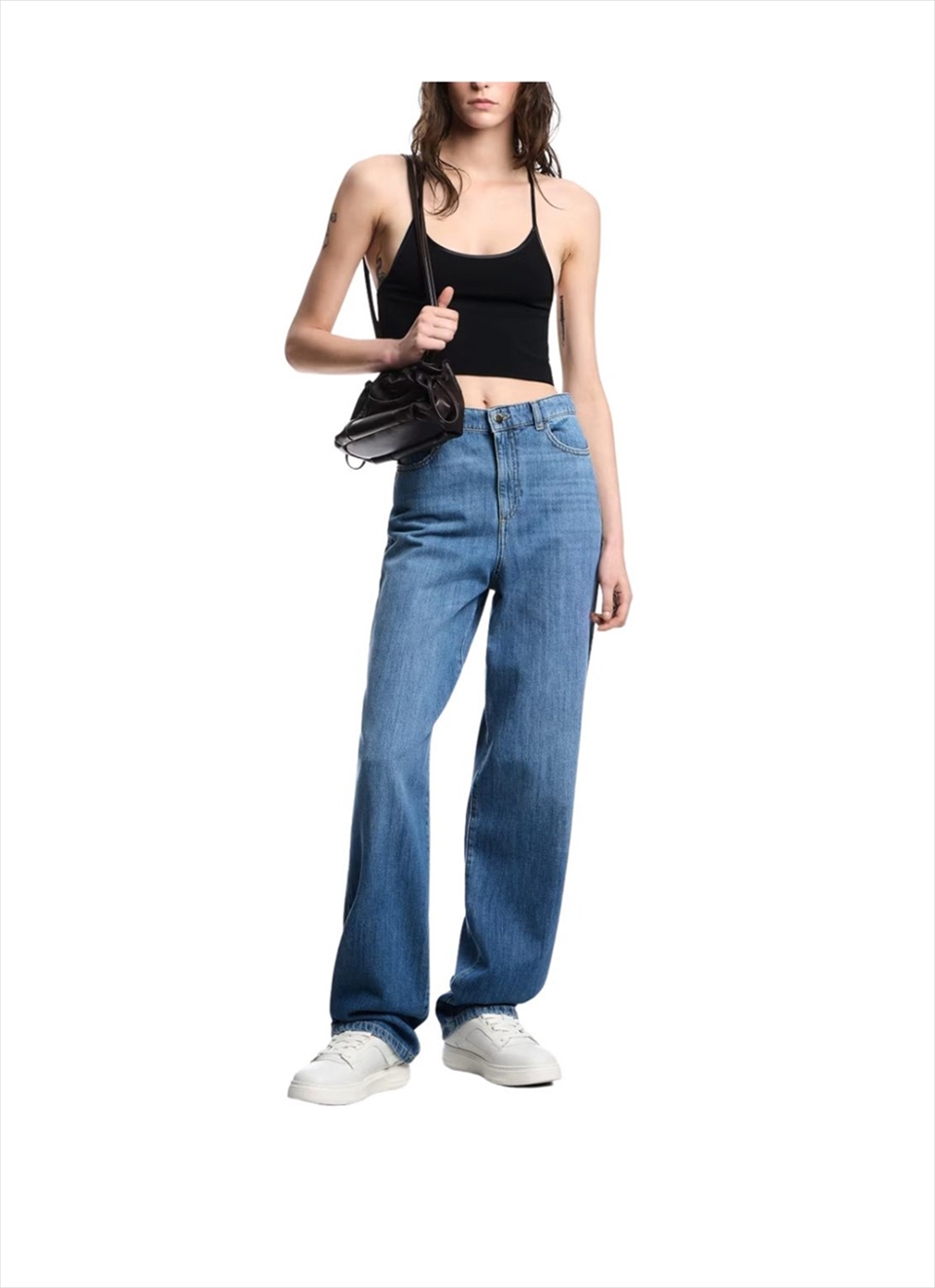 Mid/high-rise jeans with a straight leg, made from pure cotton denim. Made distinctive by a leather jacron with a gold logo. Regular fit.
