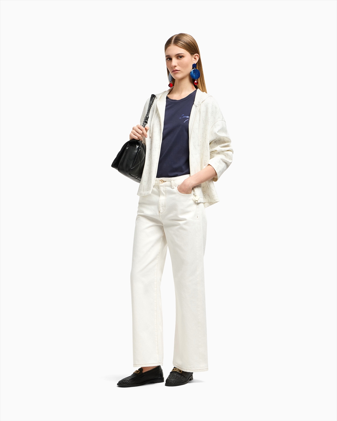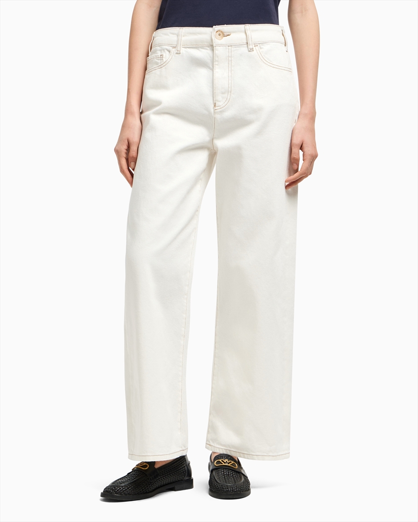 Modern-style jeans enhanced by a modern mid-rise fit and cropped wide leg. Made from stretch cotton bull and featuring a garment-dyed wash that gives the piece a fresh, exclusive look. The embossed EA logo on the back pocket adds a distinctive touch. Regular fit.