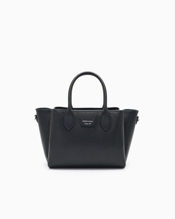 Medium shopper bag with double handle and practical detachable shoulder strap. Essential and simple design for a line of accessories that combines style and functionality, perfect for any occasion, from travelling to wearing every day. The screen-printed logo blends with the palmellato-leather finish featured on this selection.