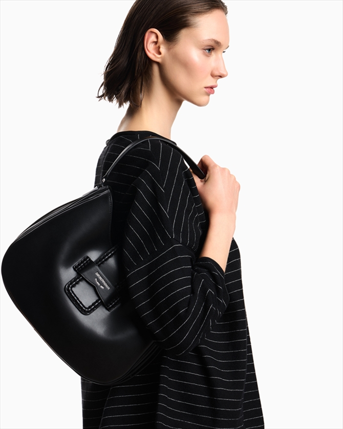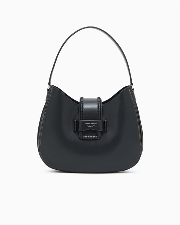 Medium hobo shoulder bag made of smooth leather, with a buckle fastening, front logo and practical detachable shoulder strap. A functional style that is handy for holding everything you need without sacrificing an on-trend design.