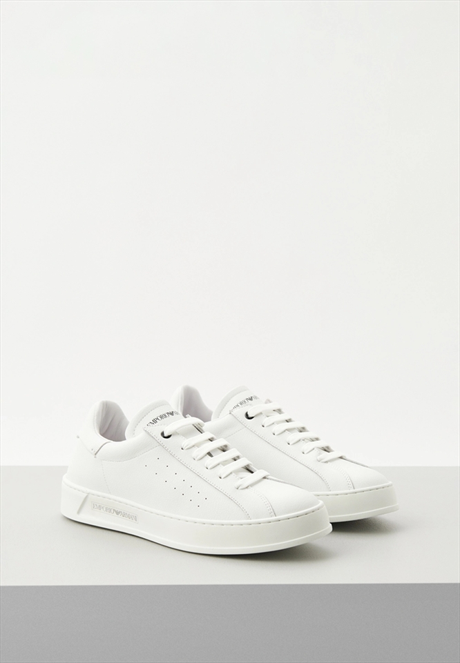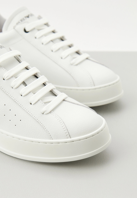 Sneaker featuring a box sole, made of leather. The model, with essential and clean lines, is embellished with a contrasting logo on the sole and on the back.