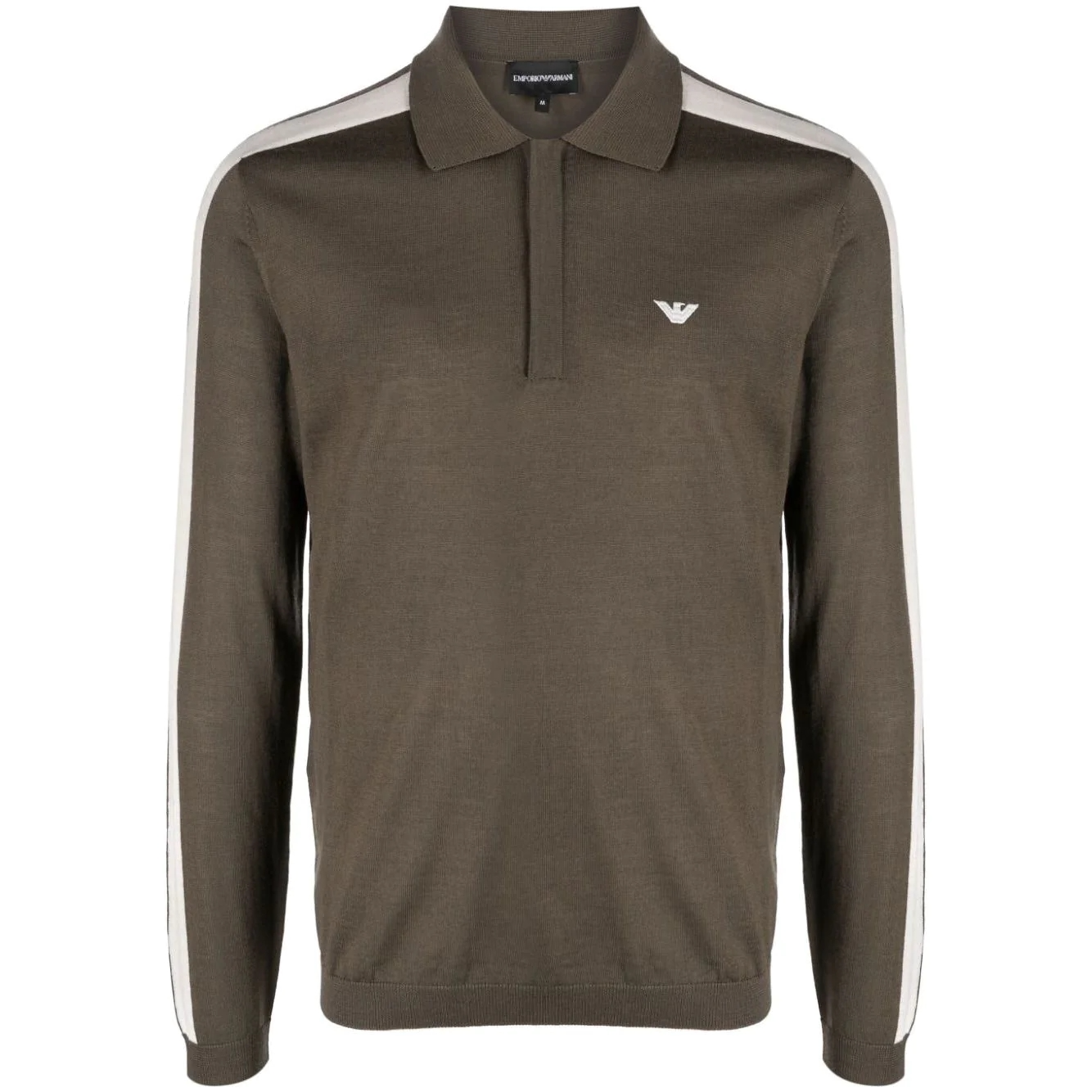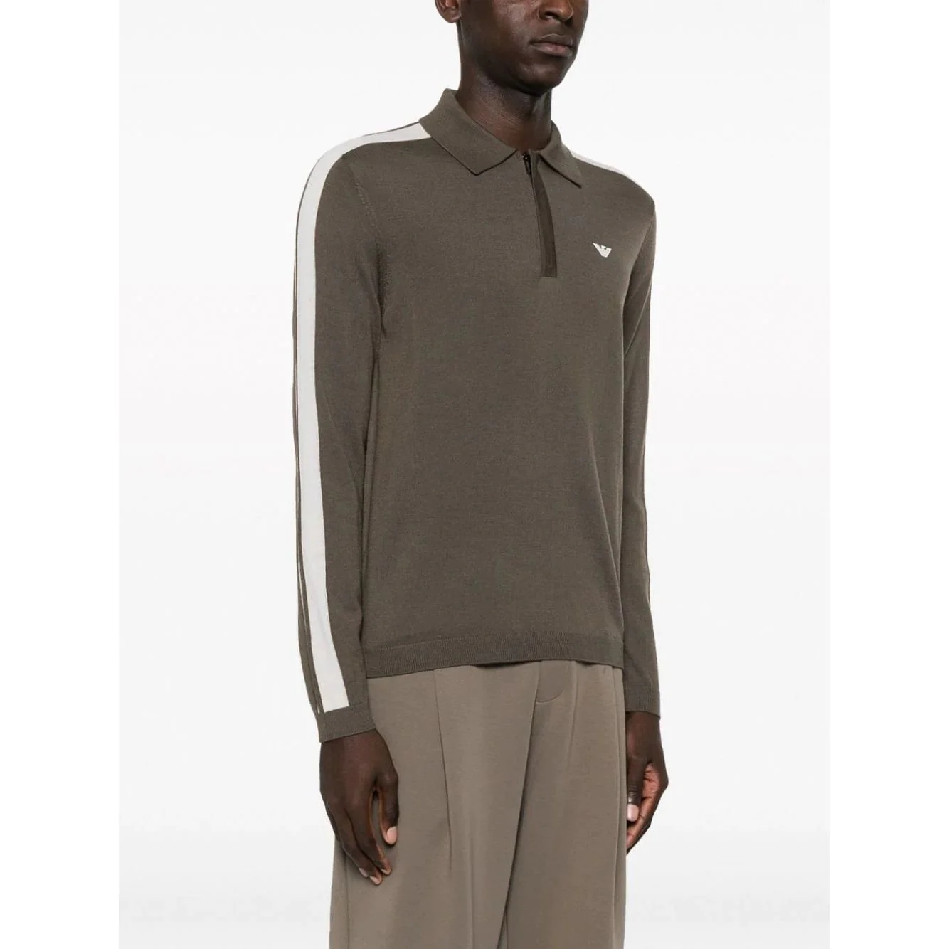 Polo neck sweater in pure shaved virgin wool with contrasting bands on intarsia sleeves. The partial hidden zip closure and the micro eagle embroidered on the chest complete the garment with distinction.