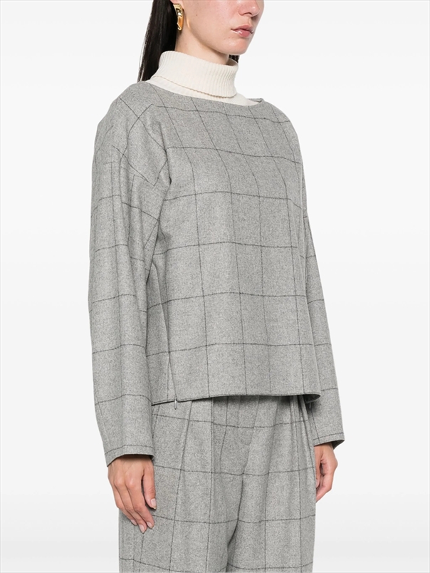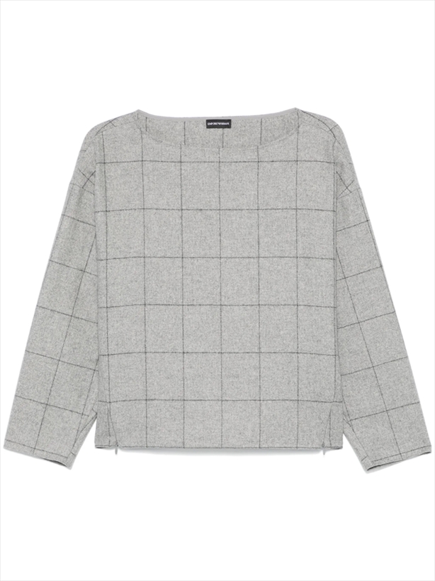 checked boat-neck sweater