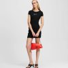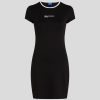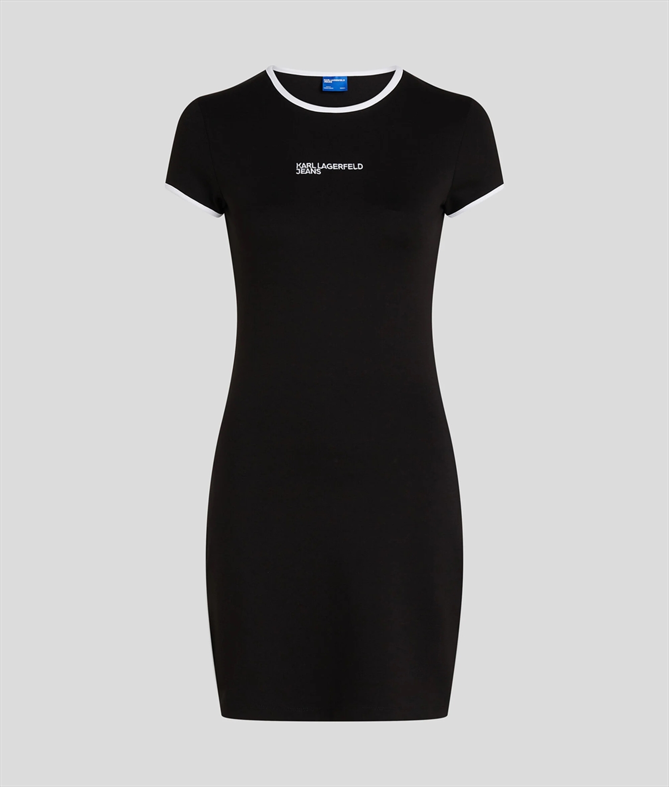 This fitted T-shirt dress features contrasting trim and an embroidered KARL LAGERFELD JEANS logo, offering a cool yet comfortable update to an everyday favorite.