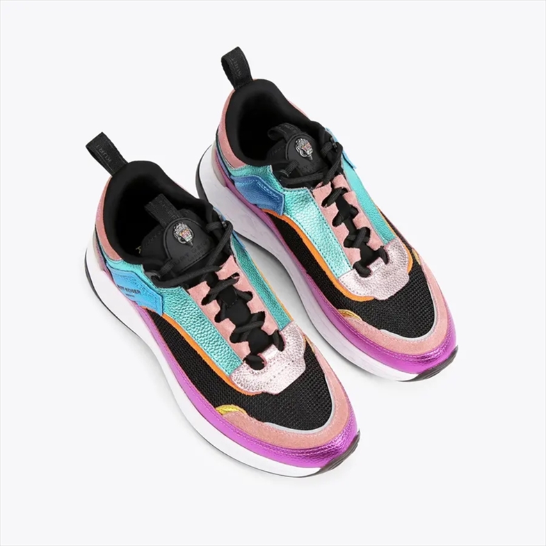 The Kensington Sneaker features a metallic leather upper and mesh detail. The tongue features a black branded monocle with antiqued silver Eagle head.