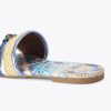 This Southbank Flat Sandal is crafted from a blue striped canvas with metallic pink trims. There is an antiqued brass eagle head sat on top of the strap. The footbed is in a statement strawberry printed style.