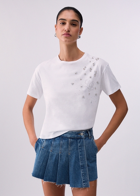 T-shirt with gemstone appliqués