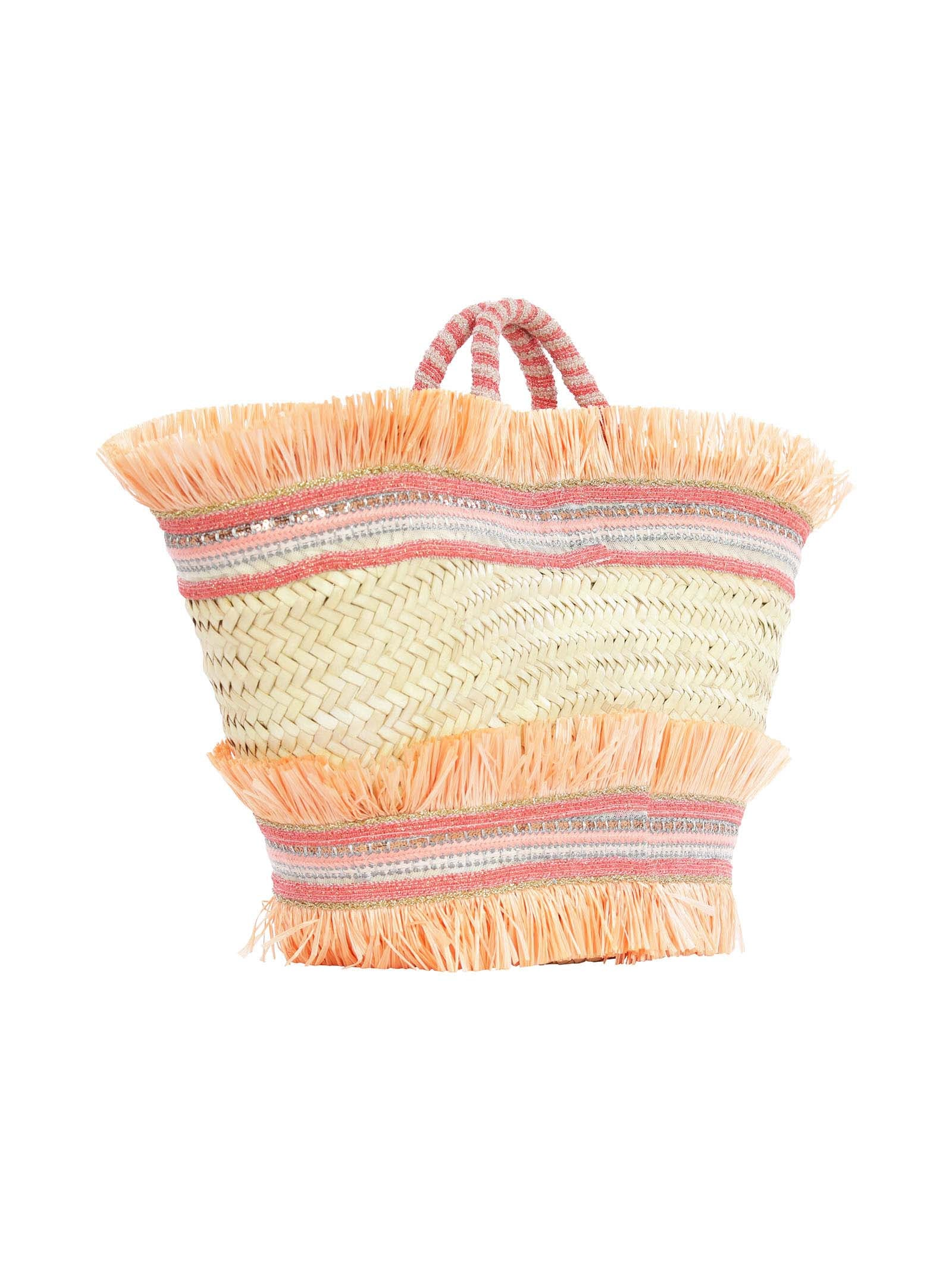 Beige straw beach bag with orange fringes