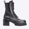 Leather combat boots with round toe, tone-on-tone laces and zip on the inner side of the 20 cm-high leg shaft. Leather lining, lugged micro rubber sole and 7 cm.