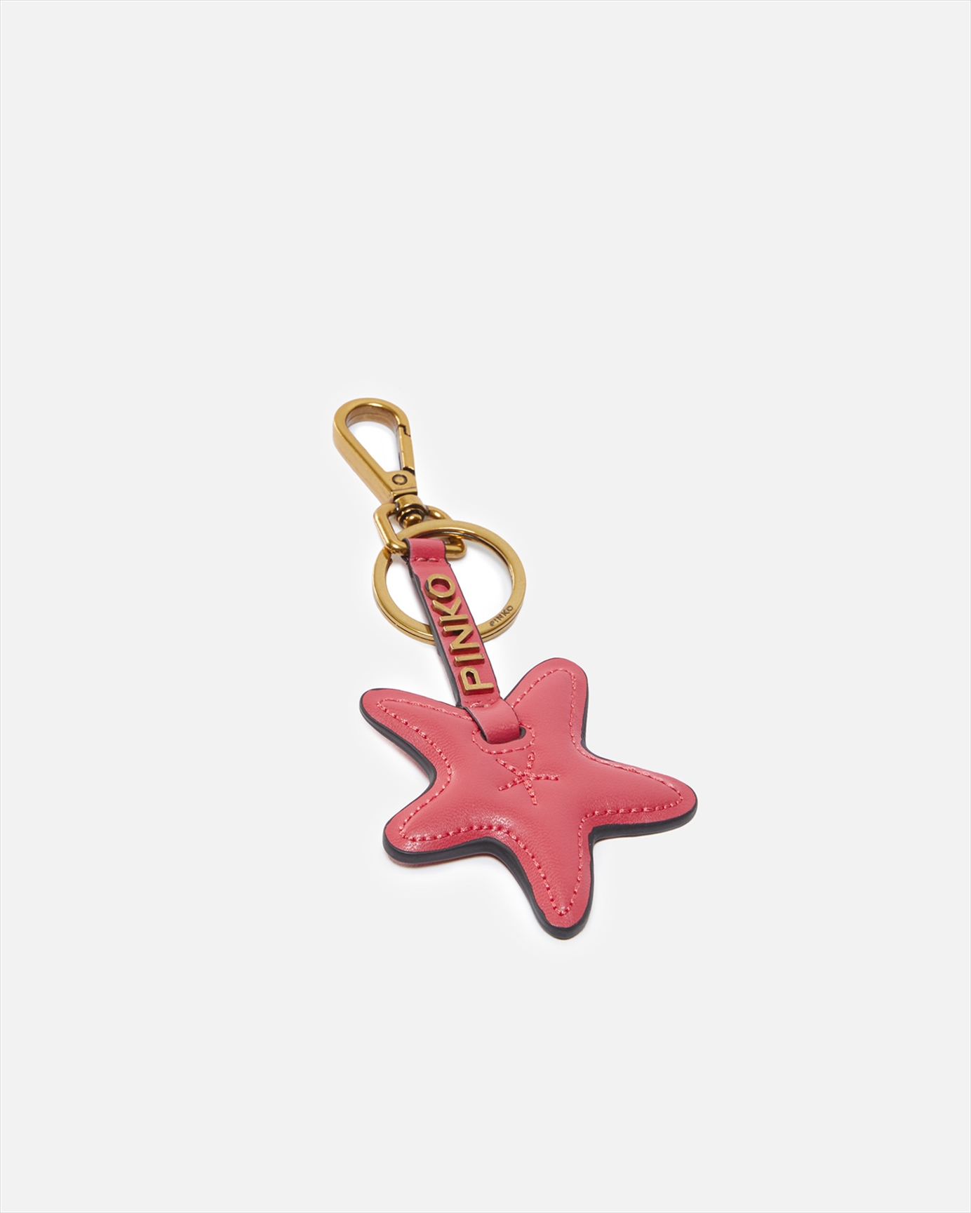 Charm keyring in the shape of a starfish, made from coloured faux leather. This item, complete with a small clasp and metal ring, features a logo-branded ribbon strap attaching the charm. More than just a keyring, this accessory can be attached to your favourite bag for a custom touch, in line with the latest trends.