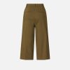 Wide, mid-calf-length Bermuda shorts in stretch linen fabric, perfect for summer. These high-waisted Bermuda shorts feature a row of three metal buttons on both sides, creating slight gathering that shapes and brings out the wearers figure. The wide-leg style of these cropped trousers flares out towards the bottom, creating an A-line shape. Covered zip and button fastening. Wear these shorts with the matching crop top in the same fabric for a feminine head-to-toe daytime look with a touch of originality.